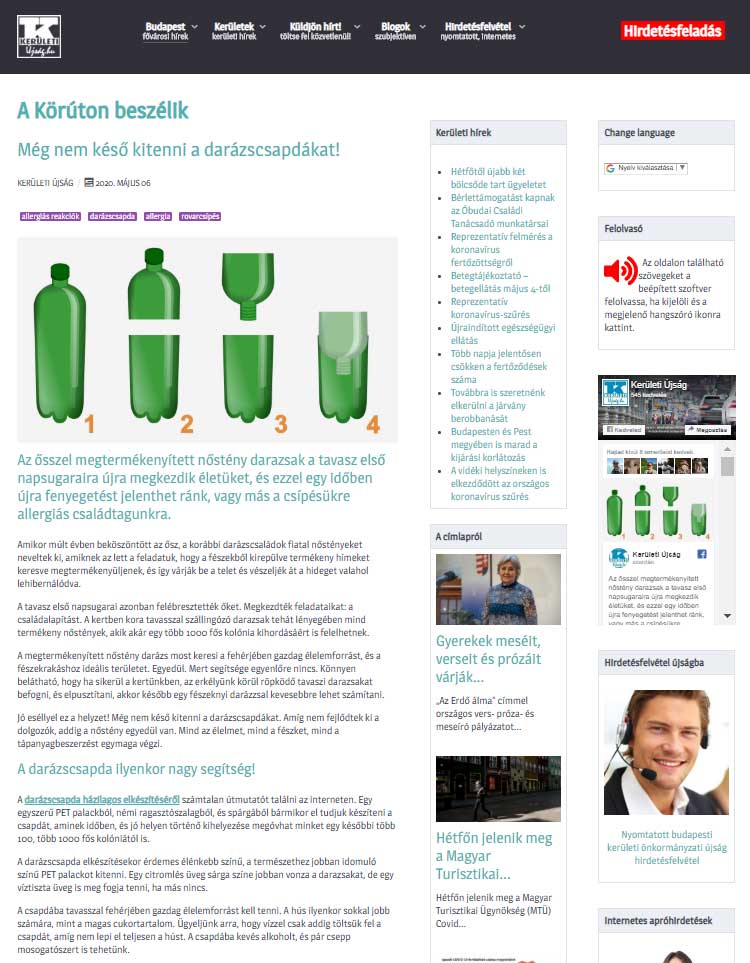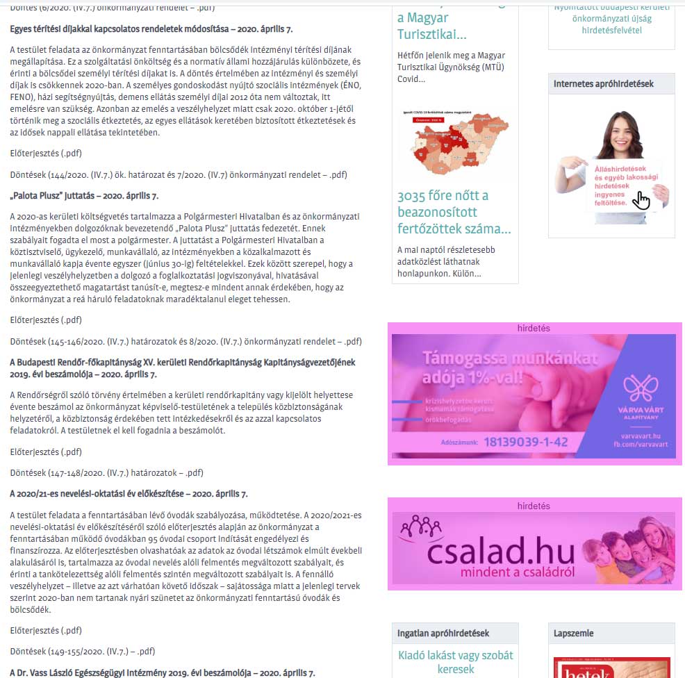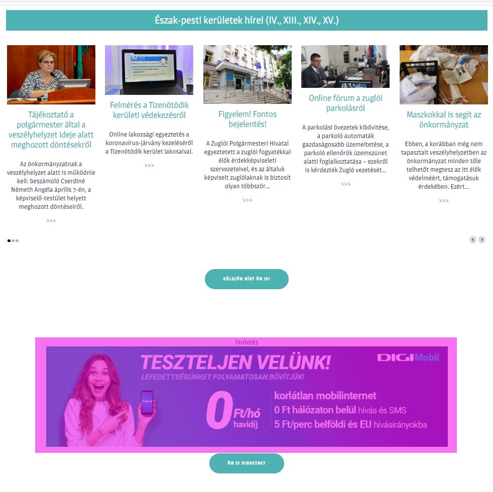 - Banner elhelyezés a www.keruletiujsag.hu főoldalon PLUSZ annak alábbi aloldalain (minta)
